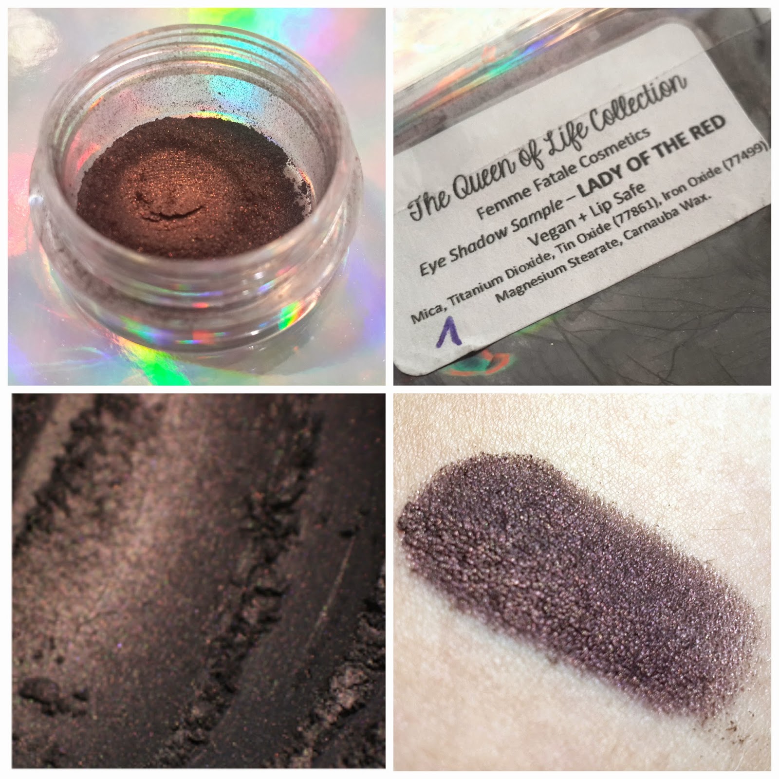 Lady of the Red - צללית שחורה בבסיסה העמוסה בשימר אדום מנצנץ. מזכירה מאוד את Blackened Maroon של TBN.