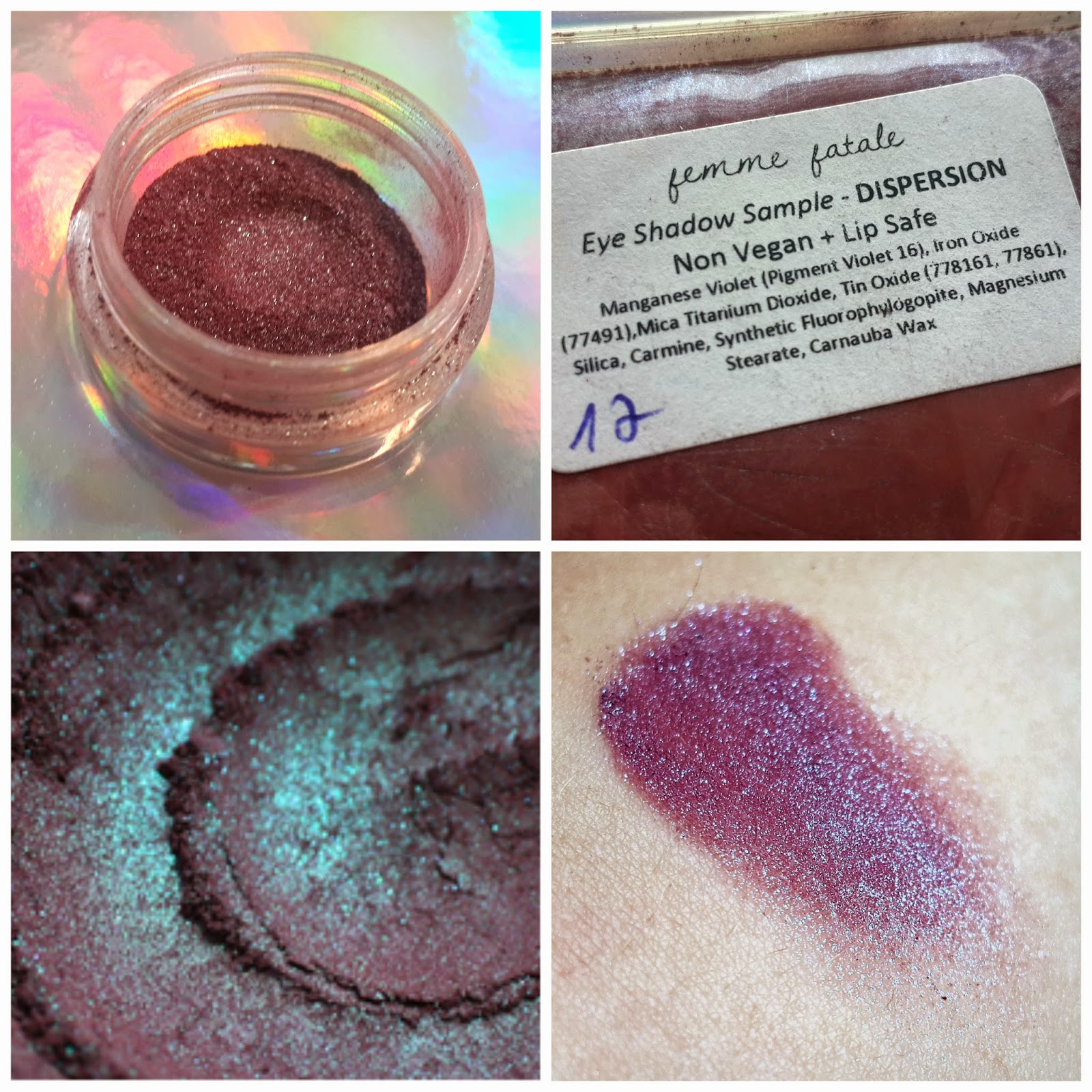 Dispersion - צללית בורדו עם שימר טורקיזי ניכר, בזוויות מסויימות נראית ירקרקה ומהתלת לחלוטין.