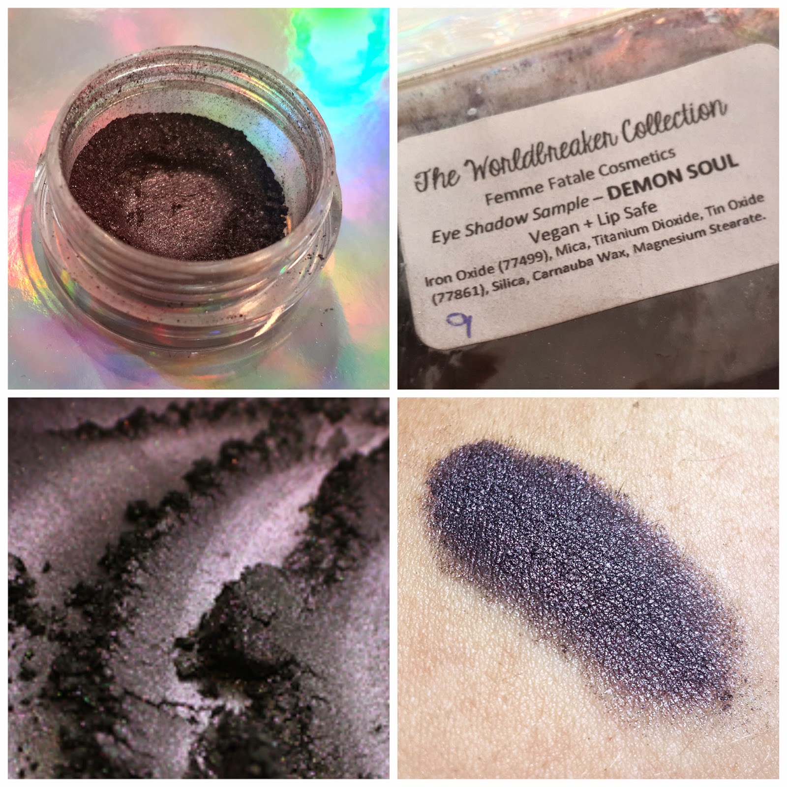 Demon Soul - צללית בגוון בורדו סגלגל עמוק עם קריצה לירוק כהה. לא משנה כמה ניסיתי, לא הצלחתי לפרגן לגוון הירוק בתמונה. תתנחמו בסווטץ' חביב נטול אפקט דואוכרומי...