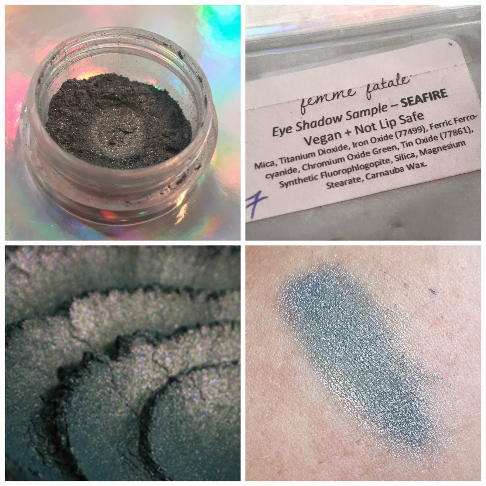 Seafire - ירוק כחלחל עם שימר זהוב ונקודות ורודות מנצנצות שהחליטו להסתתר בתמונה..