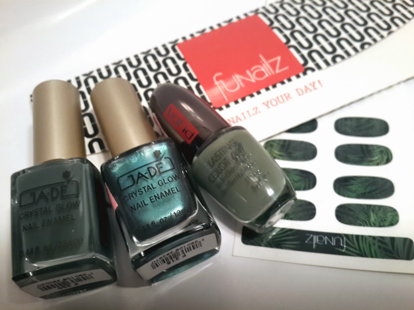 לקים בגוונים "צבאיים" אני פחות אוהבת, אבל הכחול-ירוק של Jade פשוט מקסים (בייחוד עם המדבקות של פניילז).